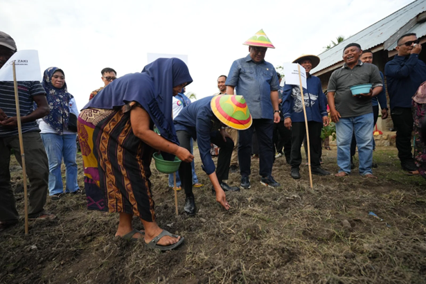 Wali Kota Sukabumi, H. Ayep Zaki, melaksanakan kegiatan penanaman kacang kedelai bersama para petani di Desa Sidoarjo, Kecamatan Tolangohula, Kabupaten Gorontalo, pada Jumat (31/10/2025).